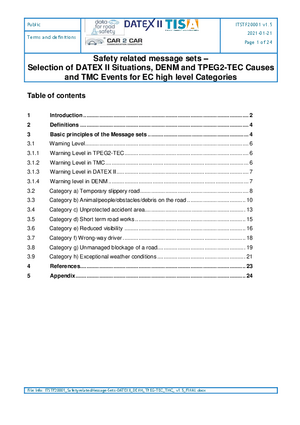 Safety related message sets –Selection of DATEX II Situations, DENM and TPEG2-TEC Causes and TMC Events for EC high level Categories