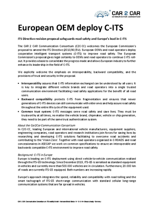 C2C CC welcomes the publication of the revised ITS Directive