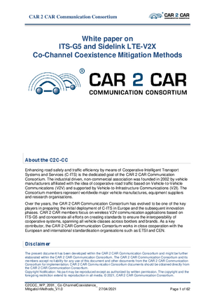 White paper on ITS-G5 and Sidelink LTE-V2X Co-Channel Coexistence Mitigation Methods